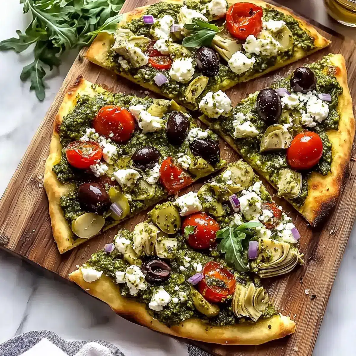 Mediterranean Flatbread Pizza: Quick & Flavorful Delight!