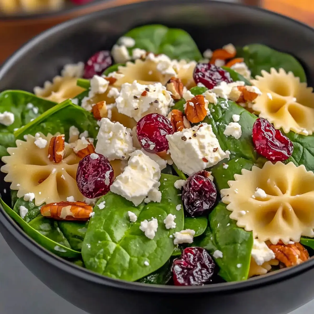 Bright Spinach Pasta Salad with Feta and Cranberries Delight