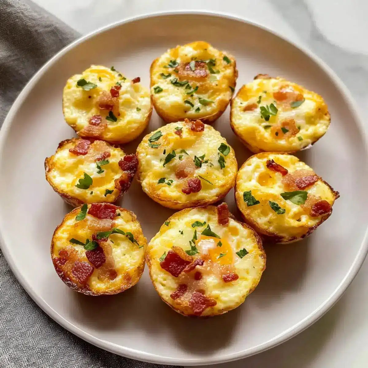 Slide the muffin tin into the oven and bake for about 23-25 minutes. Keep an eye on the edges; they should set nicely while the center remains slightly jiggly. A toothpick inserted into the center should come out clean when they’re done cooking. Avoid overbaking to ensure a light and fluffy texture.