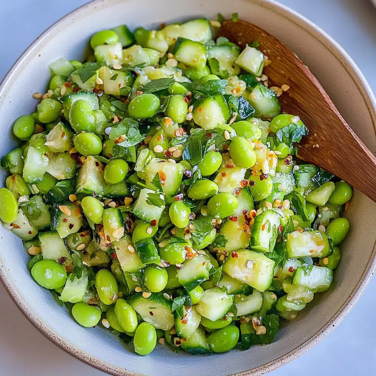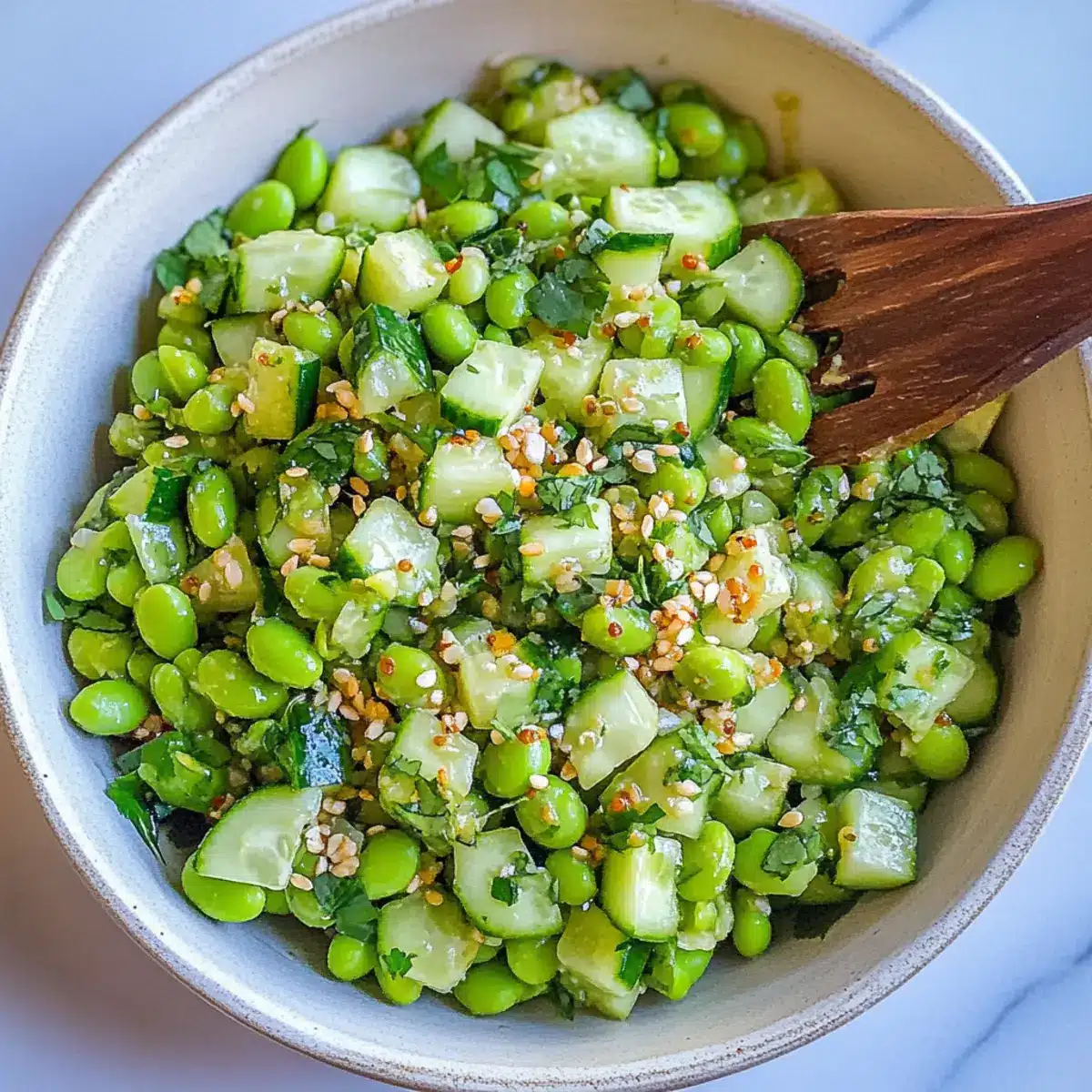 If your Cucumber Edamame Salad turns out watery, don’t worry! It might be due to the cucumbers releasing their moisture. To resolve this, try placing the chopped cucumbers in a colander and sprinkling them with salt. Let them sit for about 15-20 minutes, then rinse and pat dry before adding them back to the salad—it’ll help reduce that excess liquid!