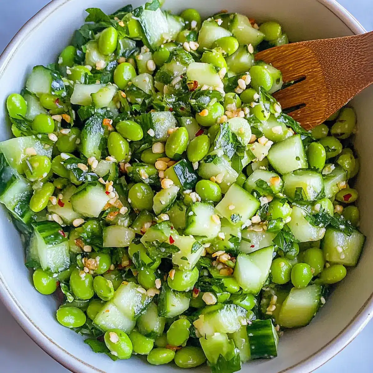 Fresh Ingredients: Use the freshest cucumbers and edamame for optimal crunch and flavor; wilted produce can lead to a soggy salad.