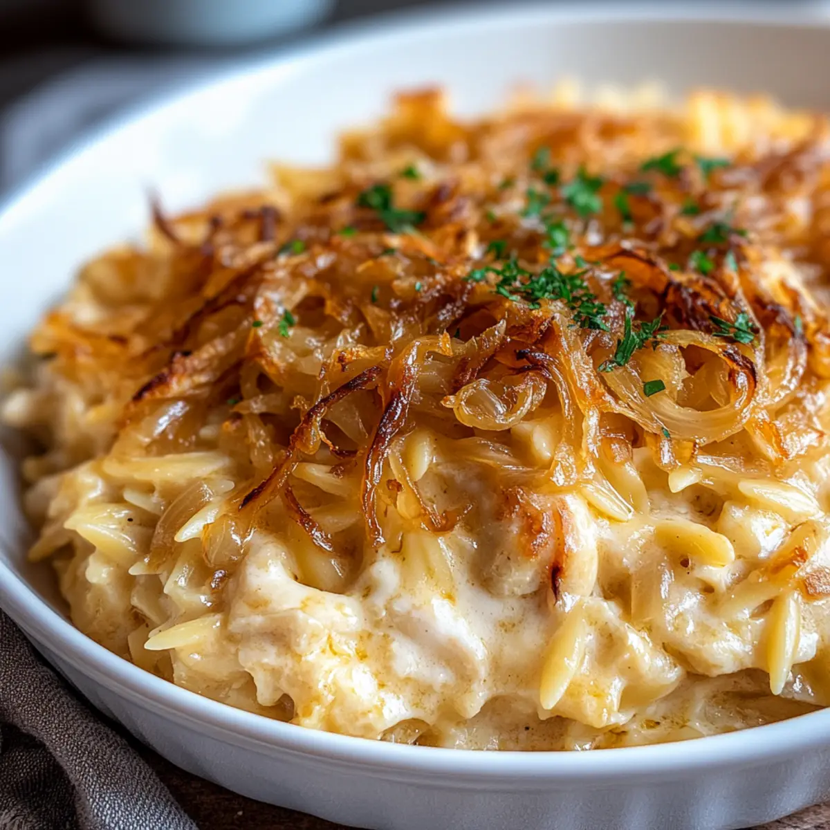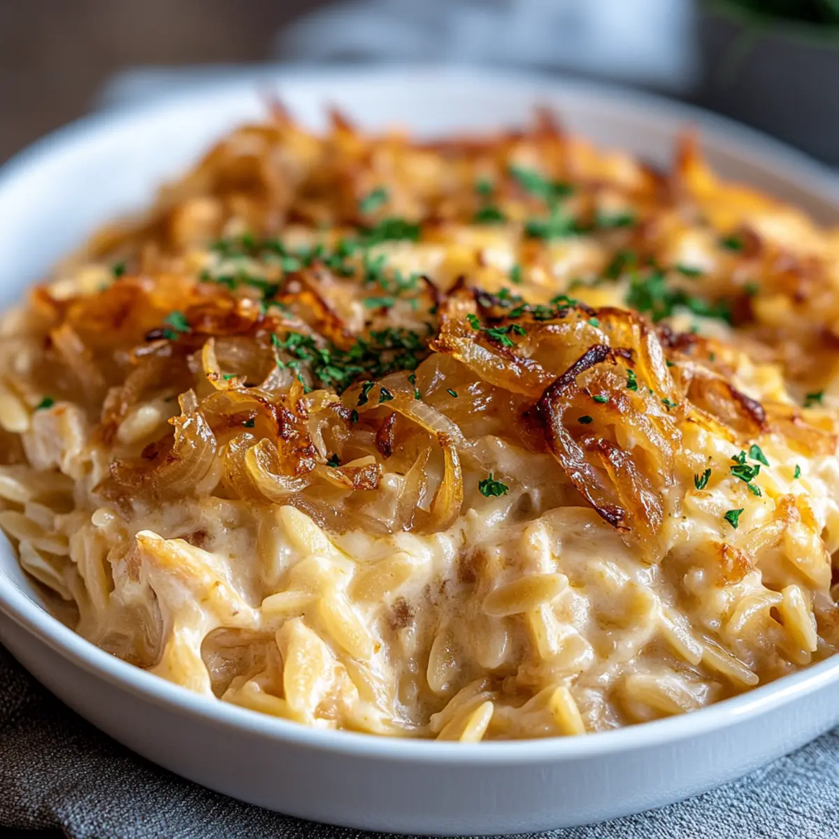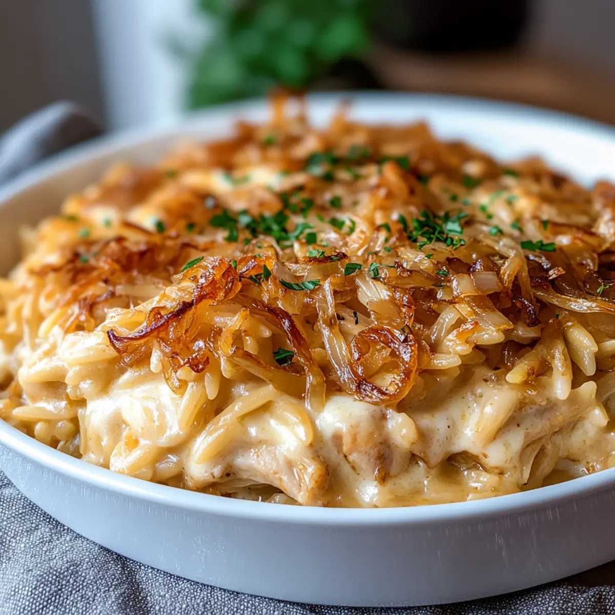 Creamy French Onion Chicken Orzo Casserole for Cozy Nights