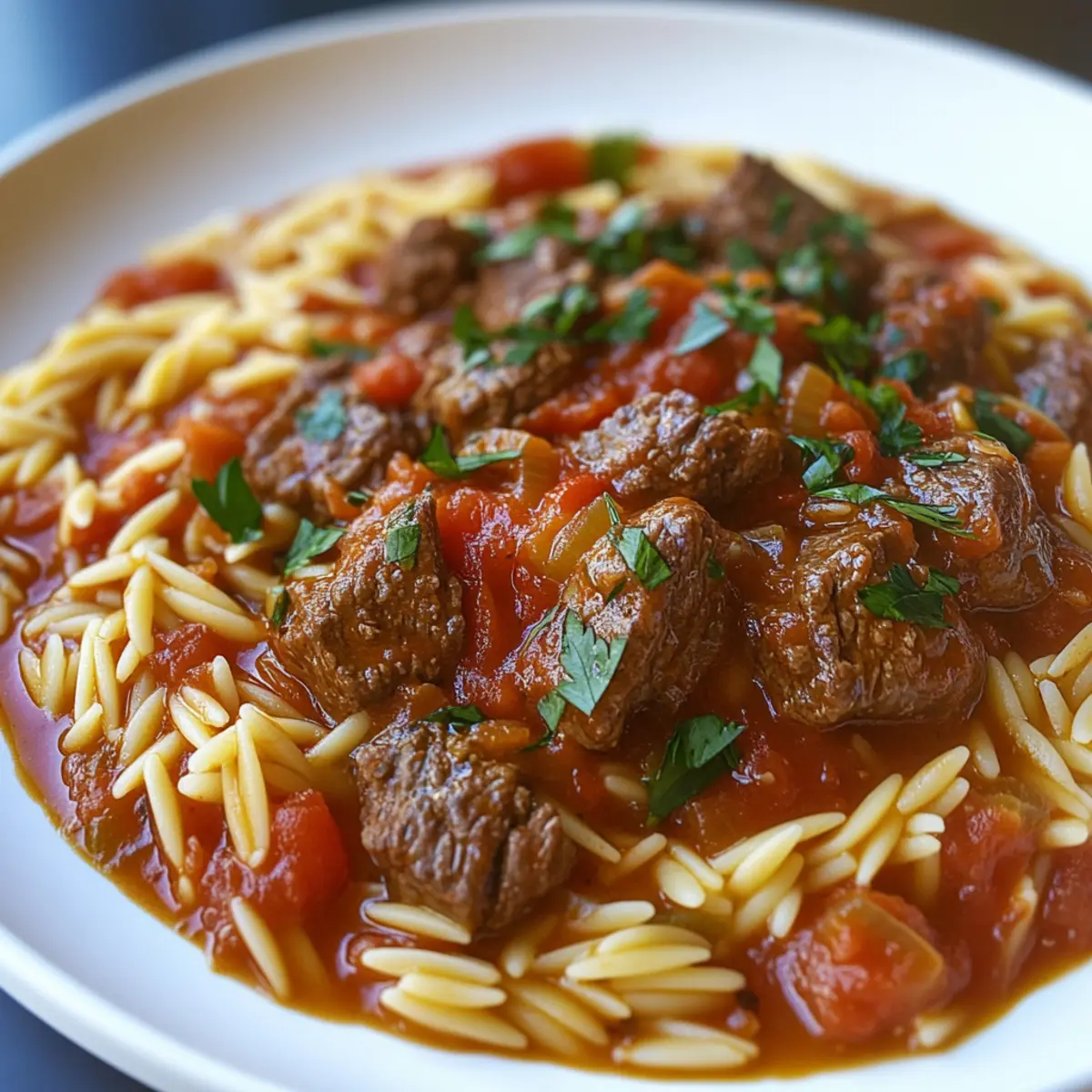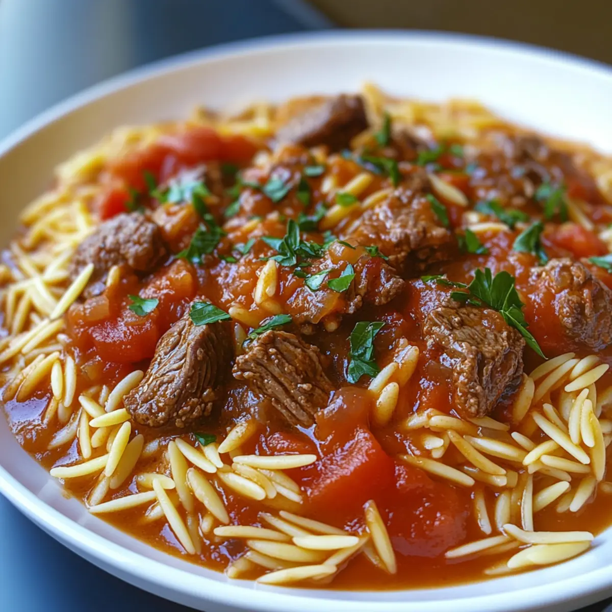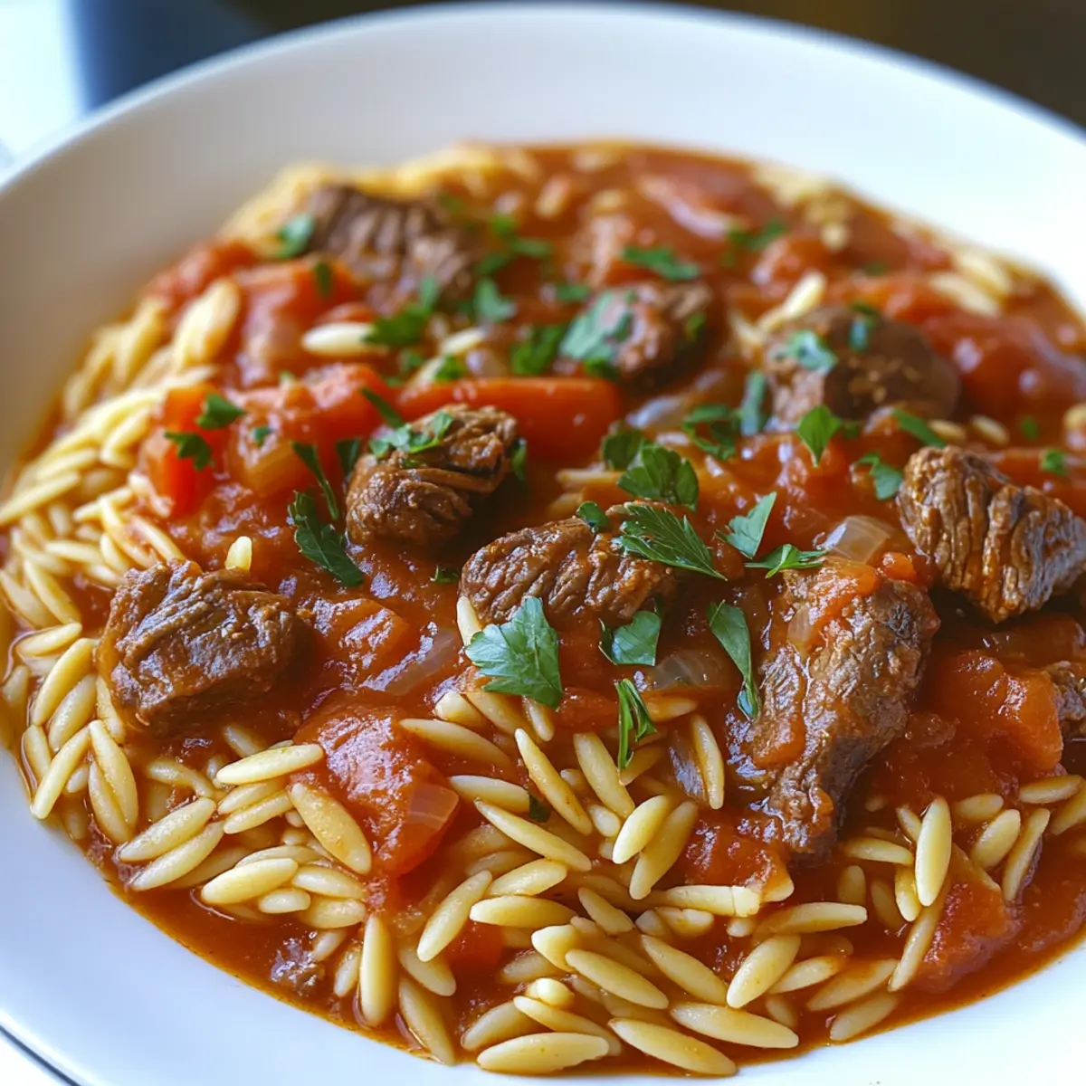After your meat has become tender, add in 1 cup of orzo while stirring gently. Check the liquid level; you should have enough to cook the pasta without it becoming too thick. If needed, add a little more broth or water to ensure the orzo cooks adequately in the rich sauce.