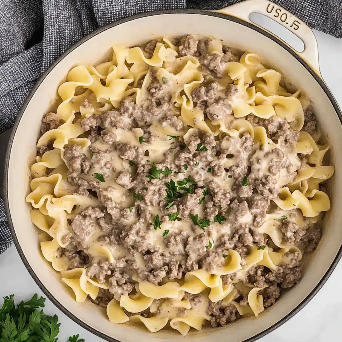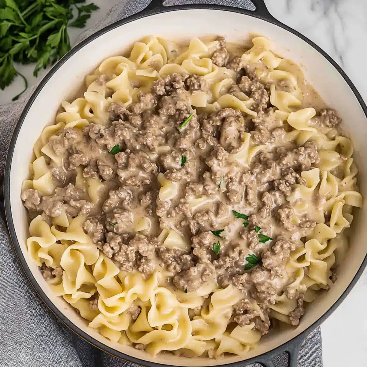 Creamy, rich sauce: The velvety sauce perfectly coats tender noodles and savory ground beef, making every bite an indulgent experience.