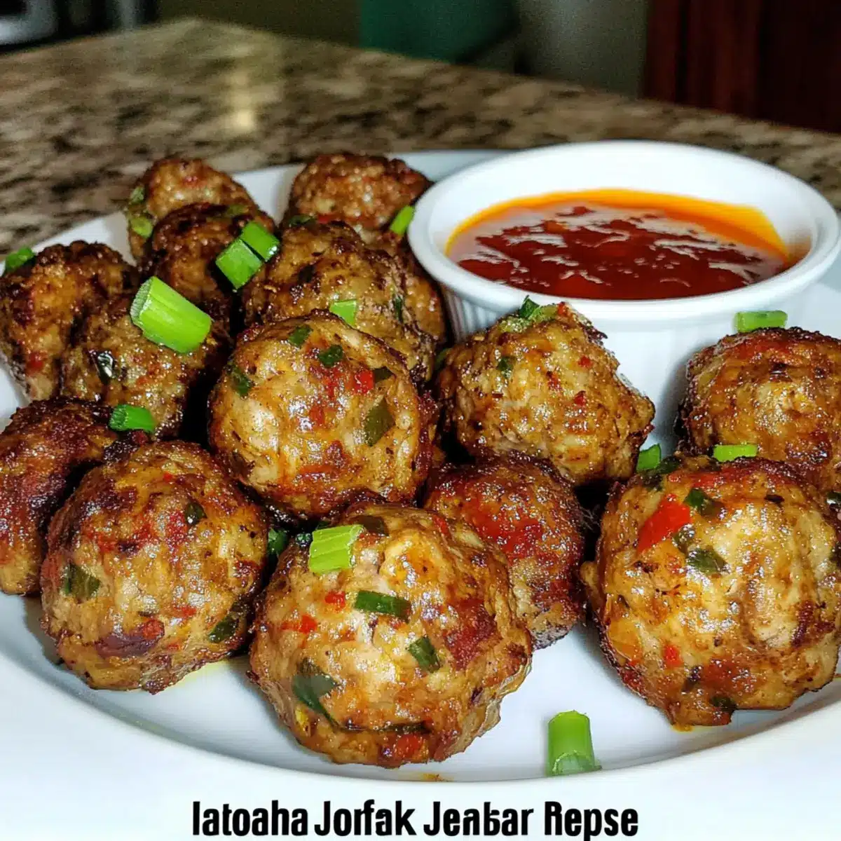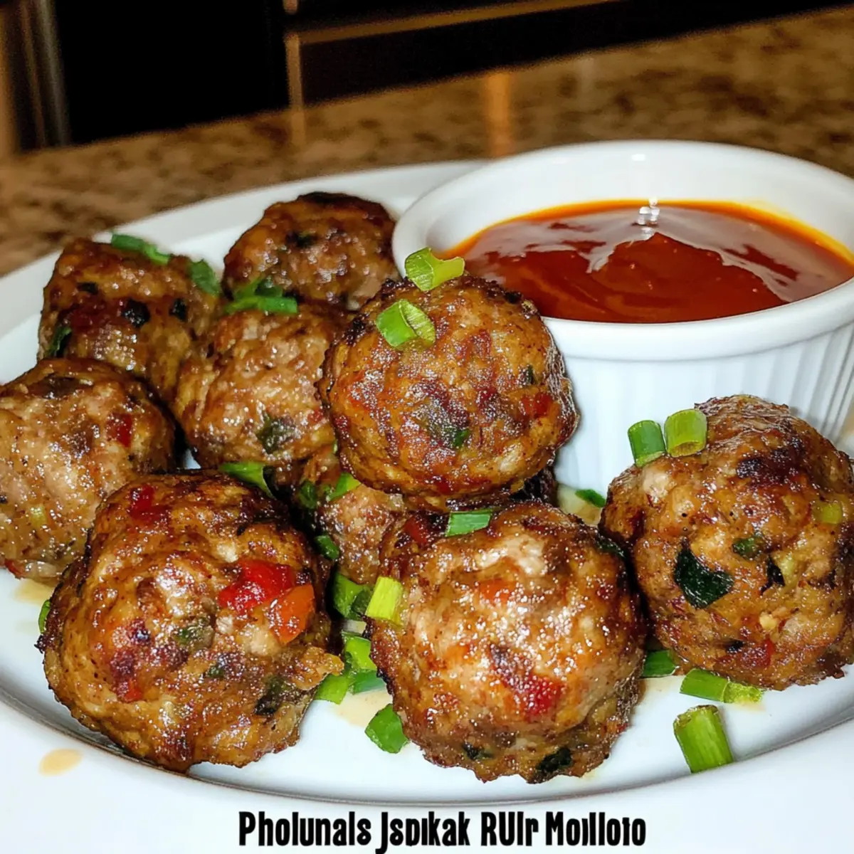 - Remove the meatballs from the oven and serve hot with spicy Caribbean dipping sauce, spicy ketchup, or your favorite hot sauce, garnished with sliced green onions.