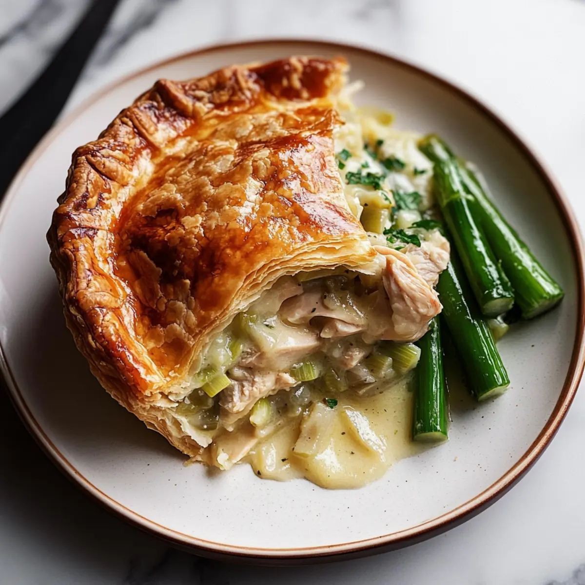 Comforting flavors abound: The creamy filling of tender chicken and leeks wrapped in flaky pastry is pure bliss.