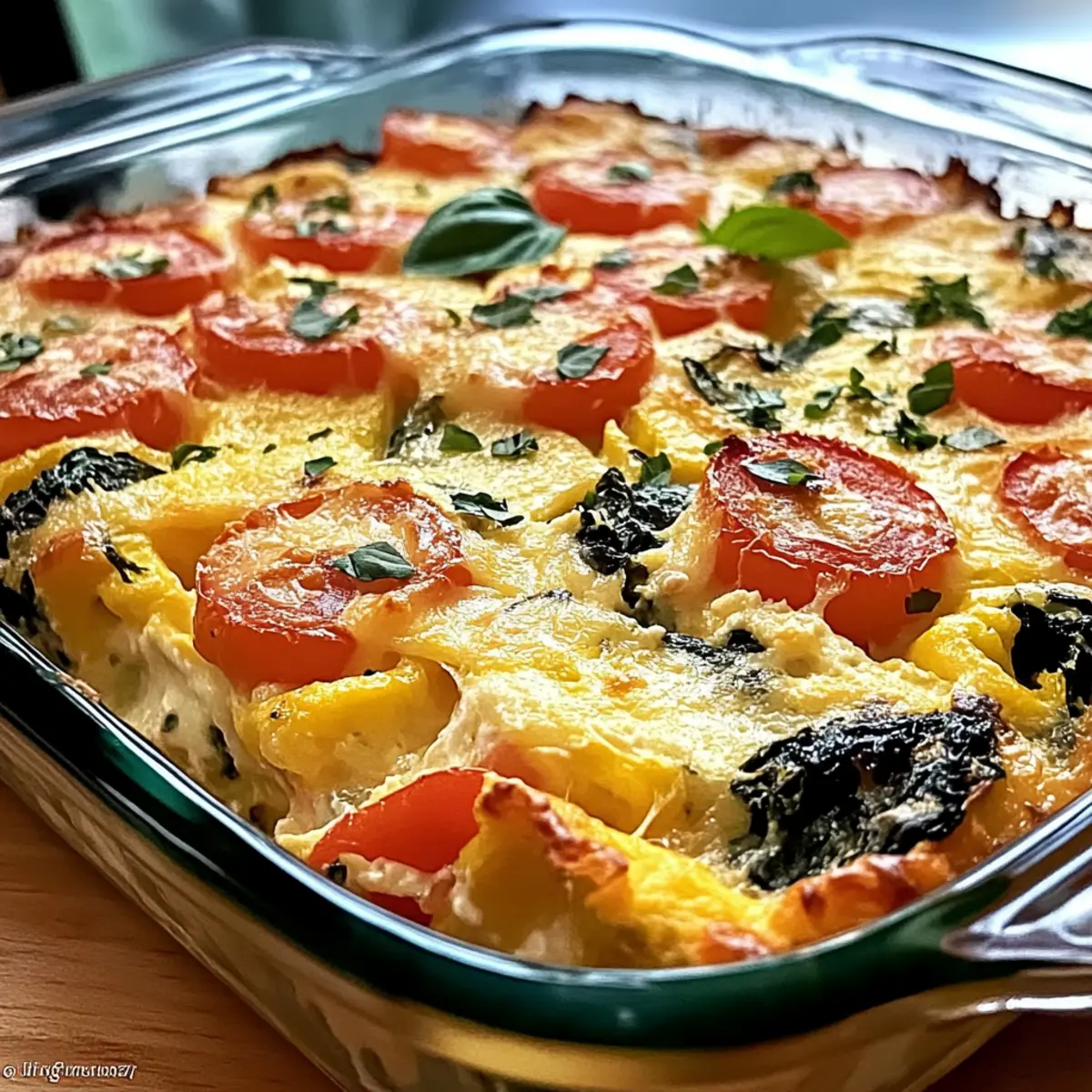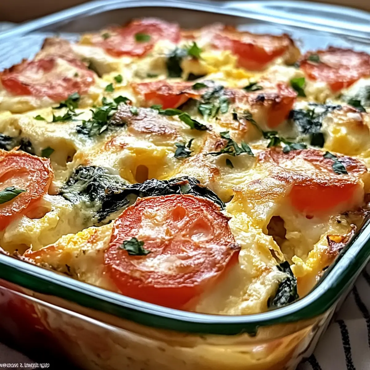 Visual Appeal: The vibrant colors of spinach and tomatoes make this casserole as gorgeous as it is delicious.
