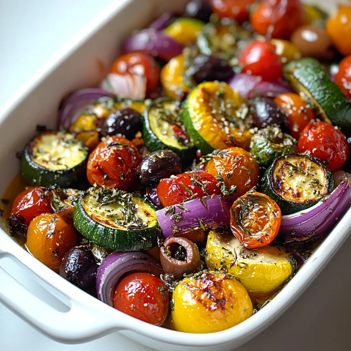 These One Pan Greek Vegetables are perfect for meal prep enthusiasts looking to save time! You can chop and season the vegetables up to 24 hours in advance; simply refrigerate them in an airtight container to maintain their freshness. If you’d like to take it a step further, you can roast the veggies and store them in the fridge for up to 3 days. When you’re ready to serve, just reheat the vegetables in a 350°F oven for about 10 minutes or broil for a couple of minutes to regain their crispy texture. This ensures your One Pan Greek Vegetables remain just as delicious, allowing you to enjoy a healthy, flavorful meal with minimal effort on busy weeknights!