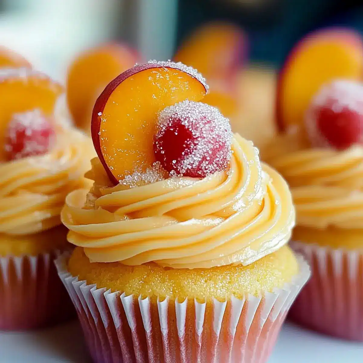 • Don’t Skimp on Garnish: Fresh peach slices and sparkling sugar not only add a delightful taste but also make your cupcakes visually stunning.