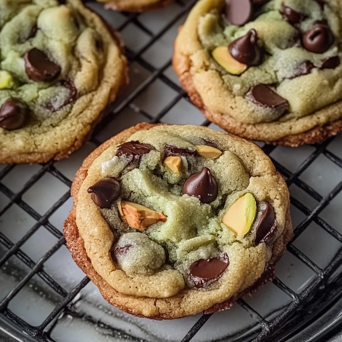 Once baked, remove your Pistachio Cream Chocolate Chip Cookies from the oven and let them cool on the baking sheets for about 5 minutes. This helps them firm up slightly before you transfer them to a wire rack, allowing them to cool completely and making them ready to be enjoyed.