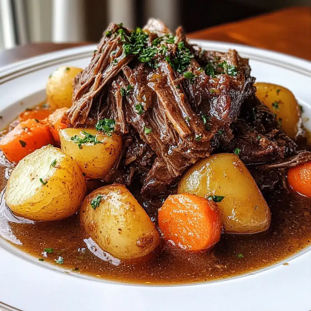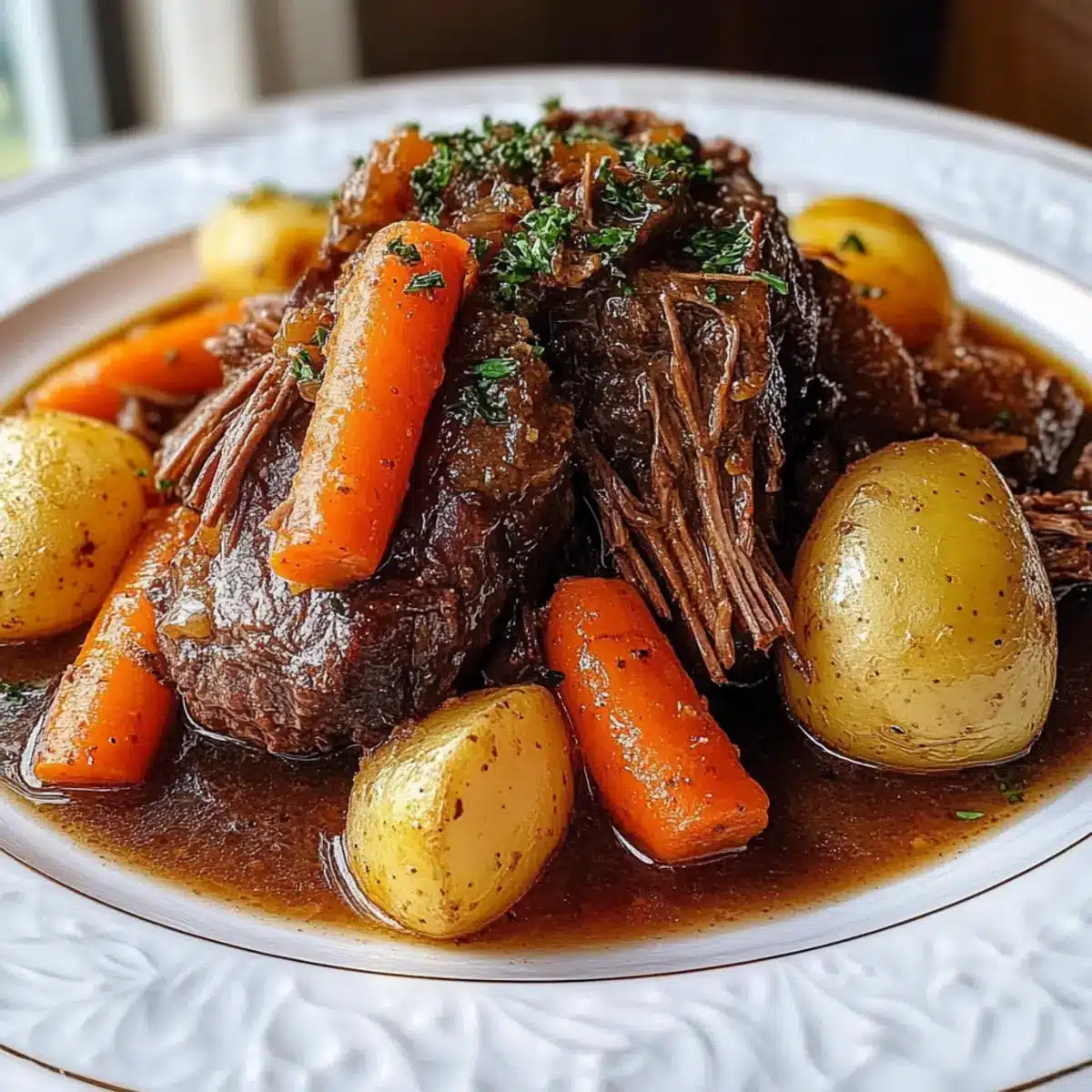 These Pot Roast Slow Cooker Fast & Easy preparations are perfect for busy weeknights! You can season the chuck roast up to 24 hours in advance; simply pat it dry, season with salt and pepper, and refrigerate it in an airtight container to lock in flavor. Additionally, chop the vegetables (onions, carrots, and potatoes) and store them in the fridge for up to 3 days. When you’re ready to cook, layer the vegetables in your slow cooker, place the roast on top, and add the broth mixture. With these make-ahead options, you’ll enjoy a comforting meal that feels just as delicious with minimal last-minute effort!