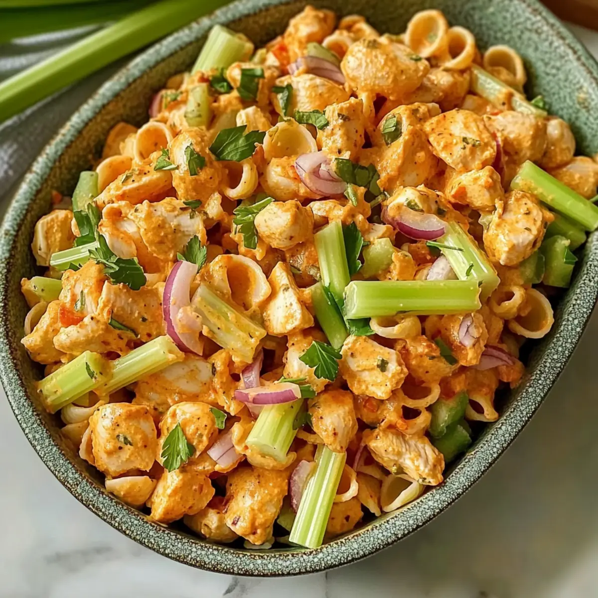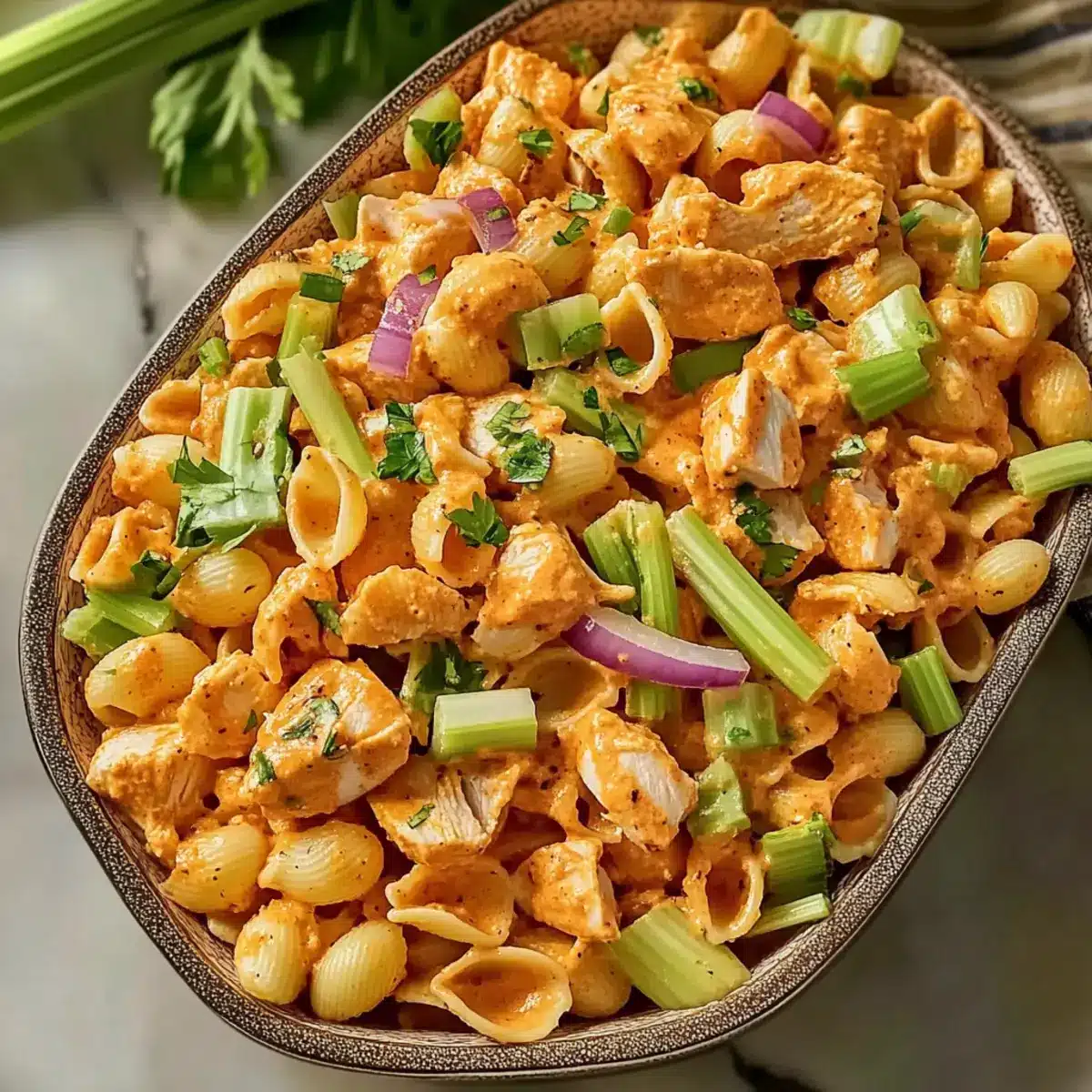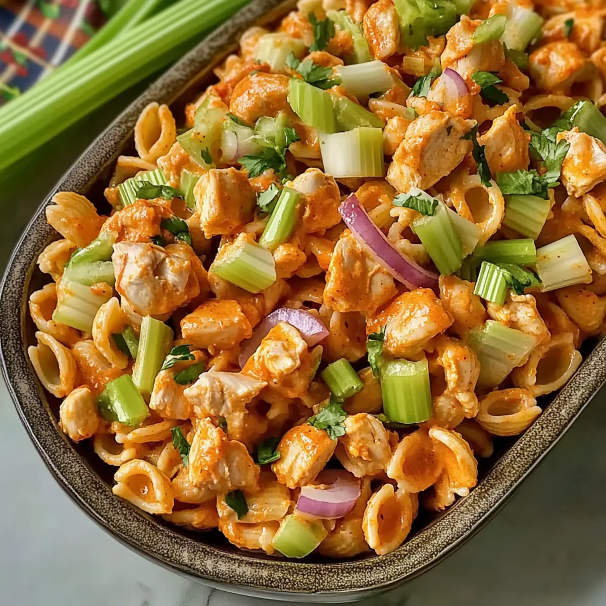 Spicy High Protein Buffalo Pasta Salad: Flavor-Packed Delight