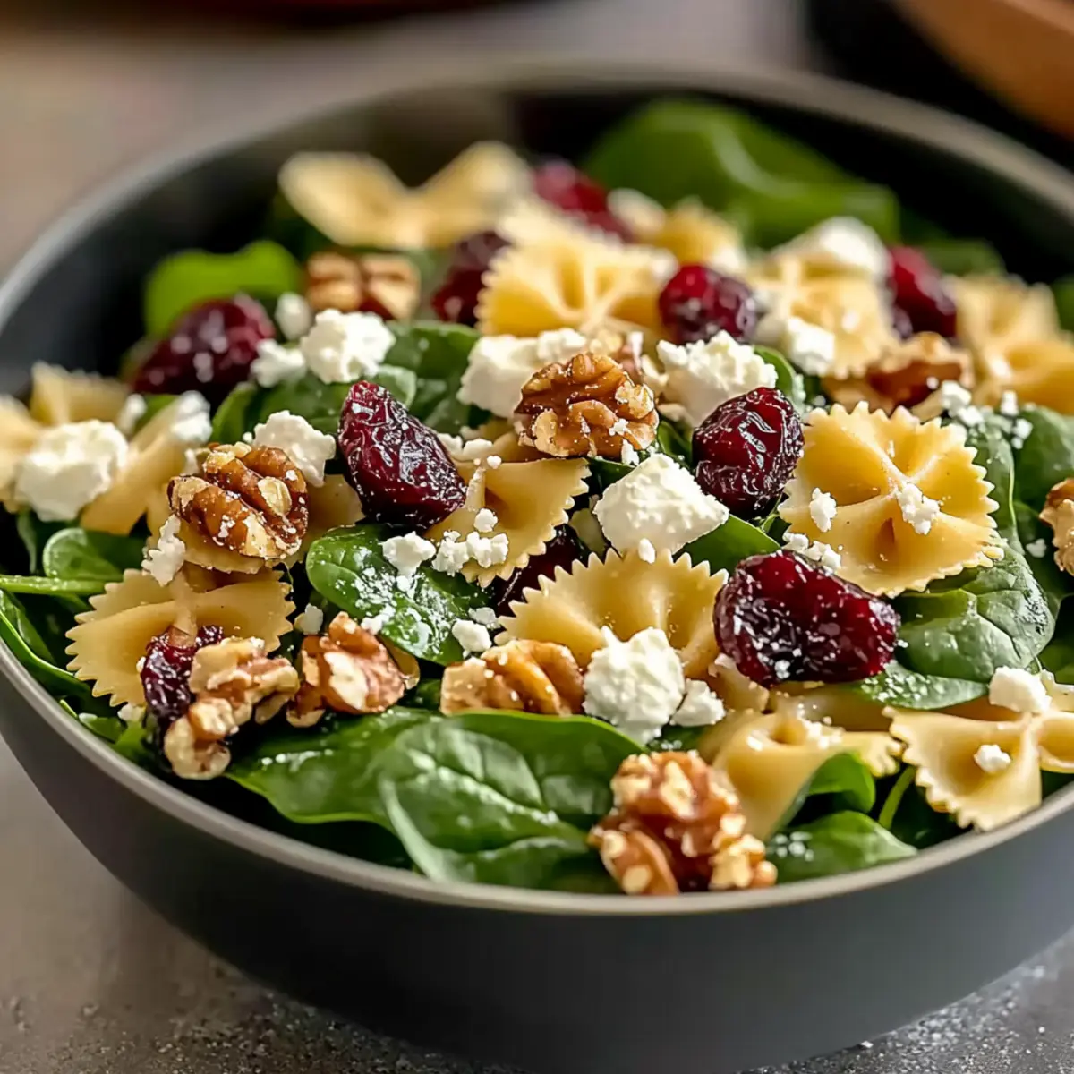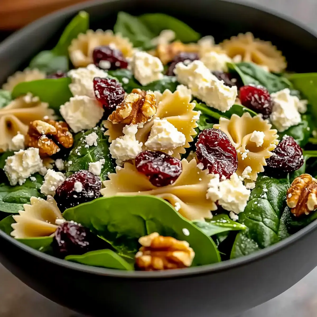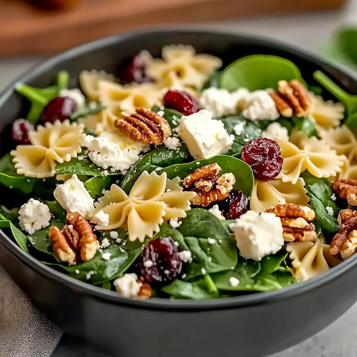 Delicious Spinach Pasta Salad with Feta and Cranberries