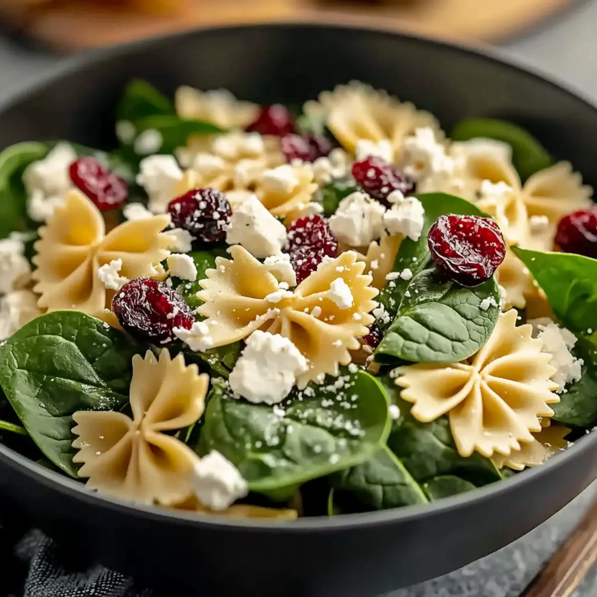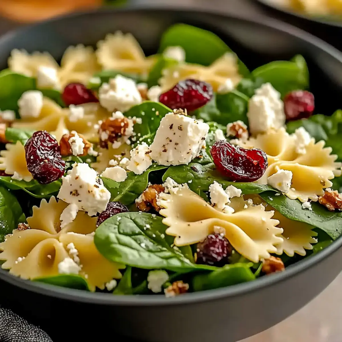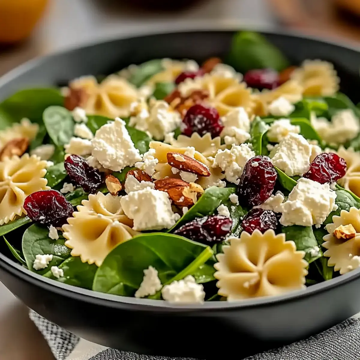 Bright Spinach Pasta Salad with Feta and Cranberries Delight