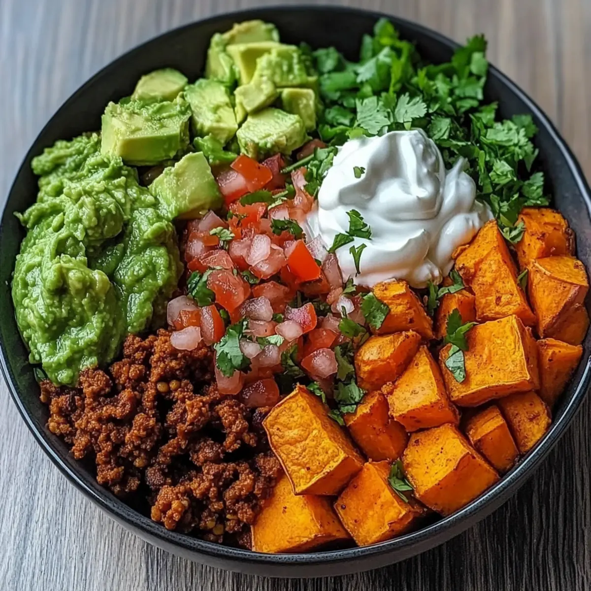 Top each bowl with a generous helping of Pico de Gallo, a dollop of guacamole, and a spoonful of sour cream. The combination of flavors and textures will elevate your Sweet Potato Taco Bowl to a delightful meal. Don’t forget to sprinkle with fresh cilantro or serve lime wedges on the side for an extra burst of brightness!